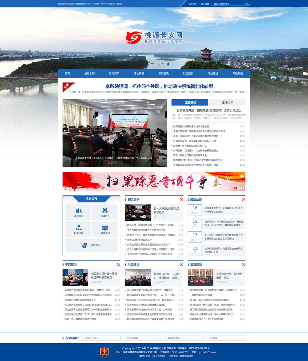 中共桃源縣委政法委員會(huì)成立于1982年,下設(shè)辦公室、政工室、執(zhí)法監(jiān)督室三個(gè)內(nèi)設(shè)機(jī)構(gòu)。2002年4月,政法委實(shí)施機(jī)構(gòu)改革,政法委與桃源縣社會(huì)治安綜合治理委員會(huì)辦公室(2011年,全稱變更為桃源縣社會(huì)管理綜合治理委員會(huì)辦公室,簡(jiǎn)稱縣綜治辦)合署辦公。2009年12月,成立桃源縣維護(hù)穩(wěn)定工作辦公室,與縣委政法委、縣綜治辦一個(gè)機(jī)構(gòu),三塊牌子。縣委政法委是縣委領(lǐng)導(dǎo)政法工作的職能部門,縣綜治辦、縣穩(wěn)定辦是協(xié)助縣委、縣政府領(lǐng)導(dǎo)全縣社會(huì)管理綜合治理工作、維護(hù)穩(wěn)定工作常設(shè)議事機(jī)構(gòu)的辦事機(jī)構(gòu)。
